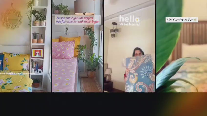 Every set includes: ✔ 1 Reversible Comforter (90×100 inches — fits King & Queen beds) ✔ 1 Double Bedsheet (with elastic or flat — as shown) ✔ 2 Matching Pillow Covers ✔ Choose from 7D prints, floral patterns, geometric designs & plain pastels