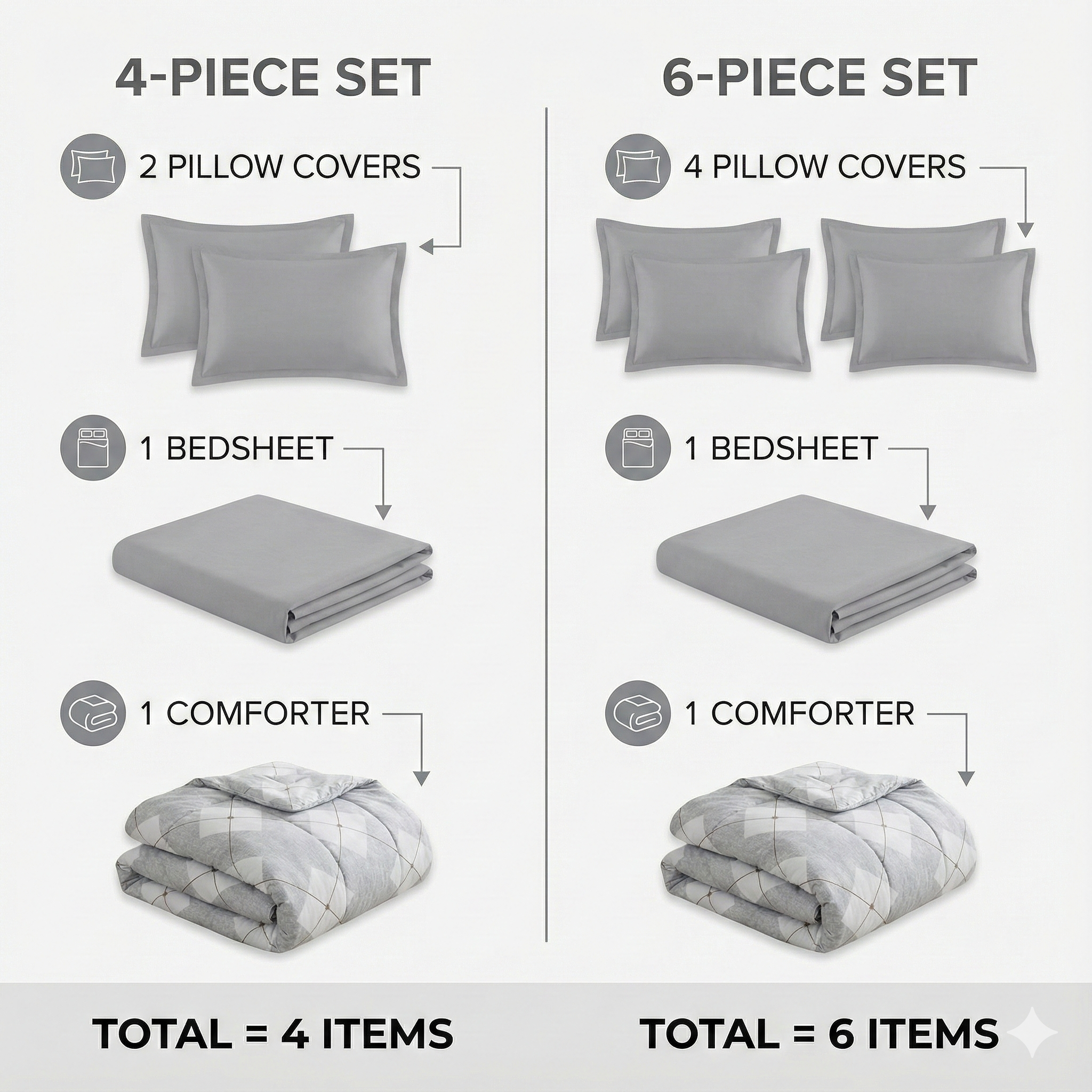 • Package Contents: 1 Double bed Heavy AC comforter set filled with Ultra-Soft Microfiber with a bedsheet and two pillow covers.