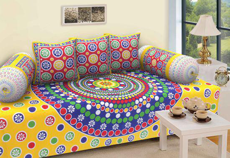 Jaipuri Design Single Bedsheet ( 100% cotton, 6pc set, Diwan set )