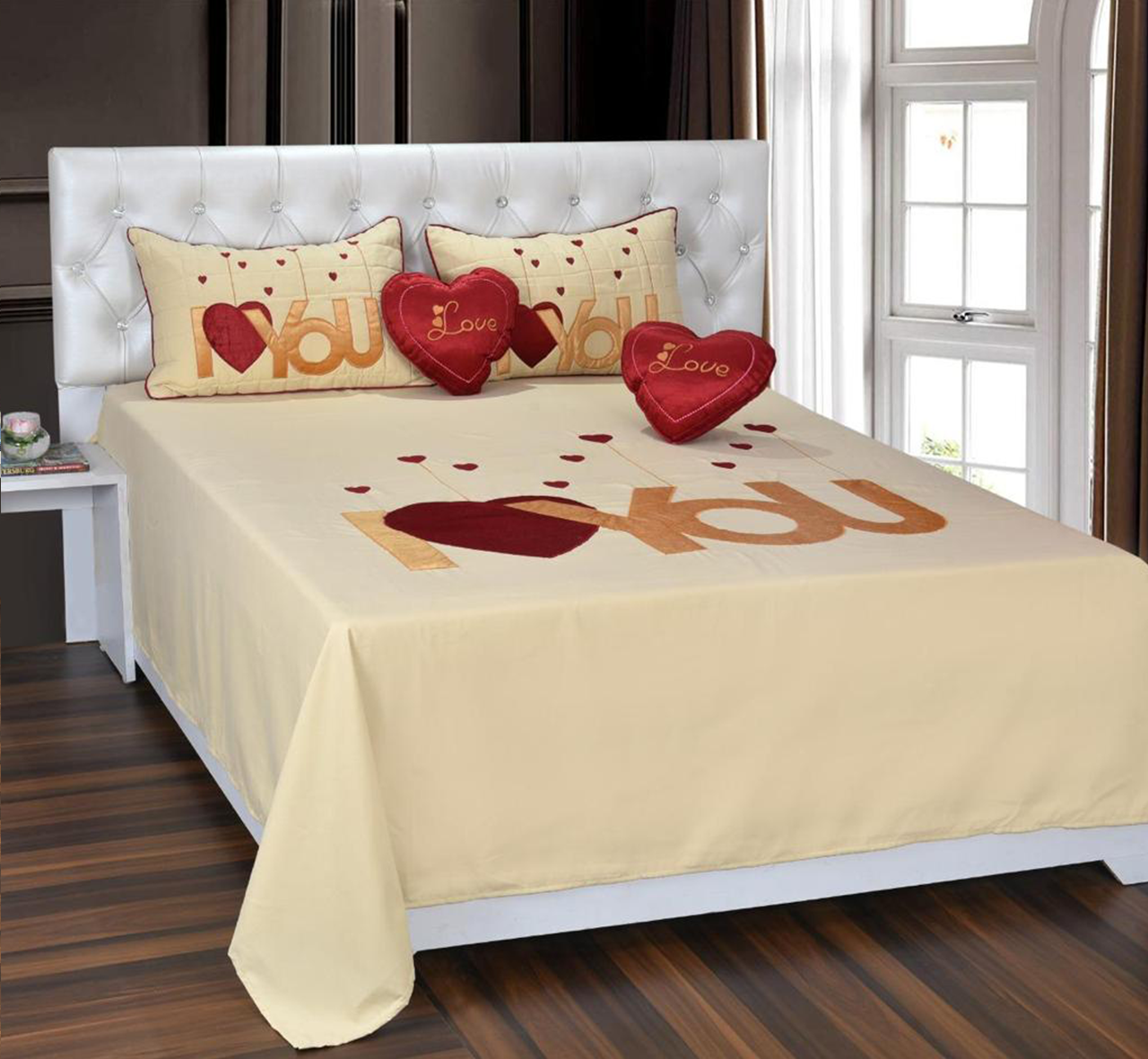 • Contain one bedsheet, two quilted pillow covers, and two heart shape cushions.